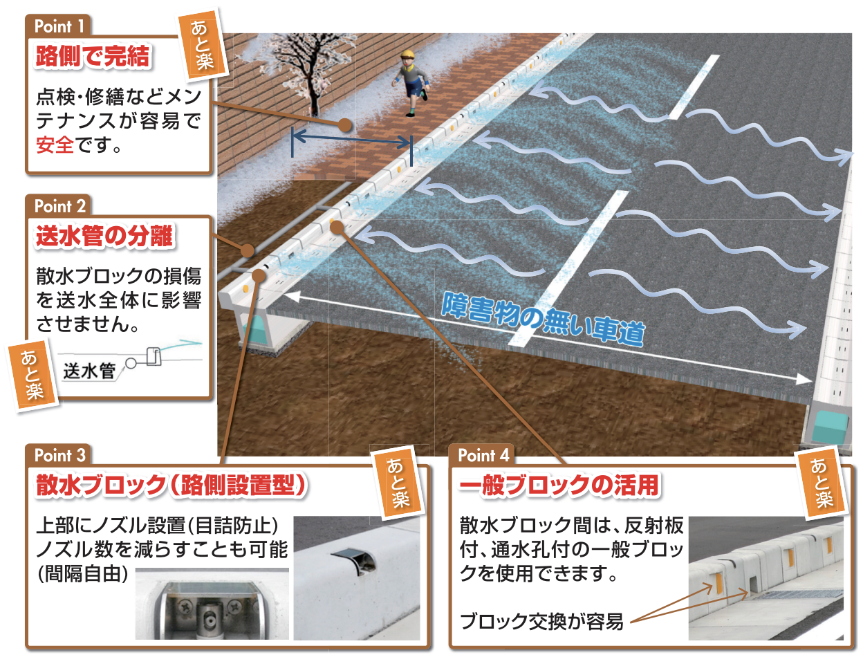 ❶ メンテナンス性に優れた路肩からの散水