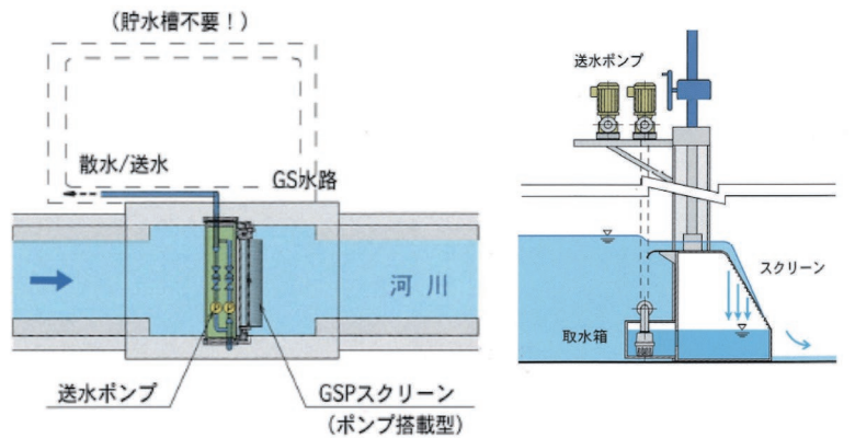 ❹ 河川など現有水の有効利用をはかるメンテナンス性に優れた取水装置(GSスクリーン)をご用意