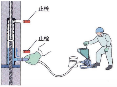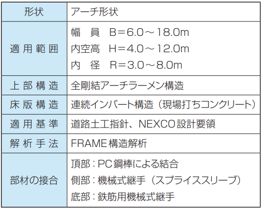 縦締め緊張後、アーチ頂版部材の脚部機械式接手部(スプライスス リーブ)及び目地部(20mm)に高 強度無収縮グラウトを充填し一体化を図る。