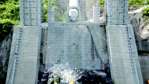 ※表記の対応可能落石エネルギーは、左右両端にコンクリート反力体を設置した実験装置で確認した実験値です。なお、本工法を実際の現場に設置する場合は、支柱及びアンカーを直接、地盤に設置します。