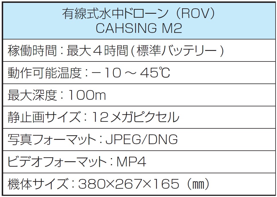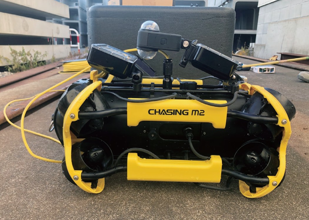 潜水する水中ROVから構造部を撮影し、静止画や動画を記録します。追加照明や360度カメラを搭載することができます。