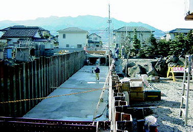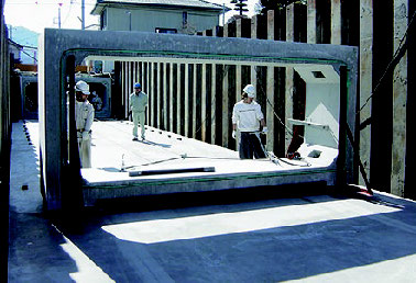 特殊な専用施工機械を必要とせず、施工が簡単に行えるため、工事費の低コスト化が可能です。また、製品質量により大きな駆動力が必要ない場合は、人力でも横引くことができます。
