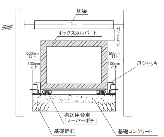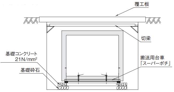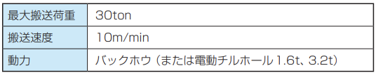 ※6 横引きの動力は、バックホウ(または電動チルホール)を標準としますが、現場条件によりフォークリフトも可能です。