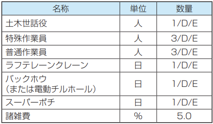 ※3 ラフテレーンクレーンおよびバックホウ(または電動チルホール)はリースを標準とします。なお、回送費は別途計上願います。