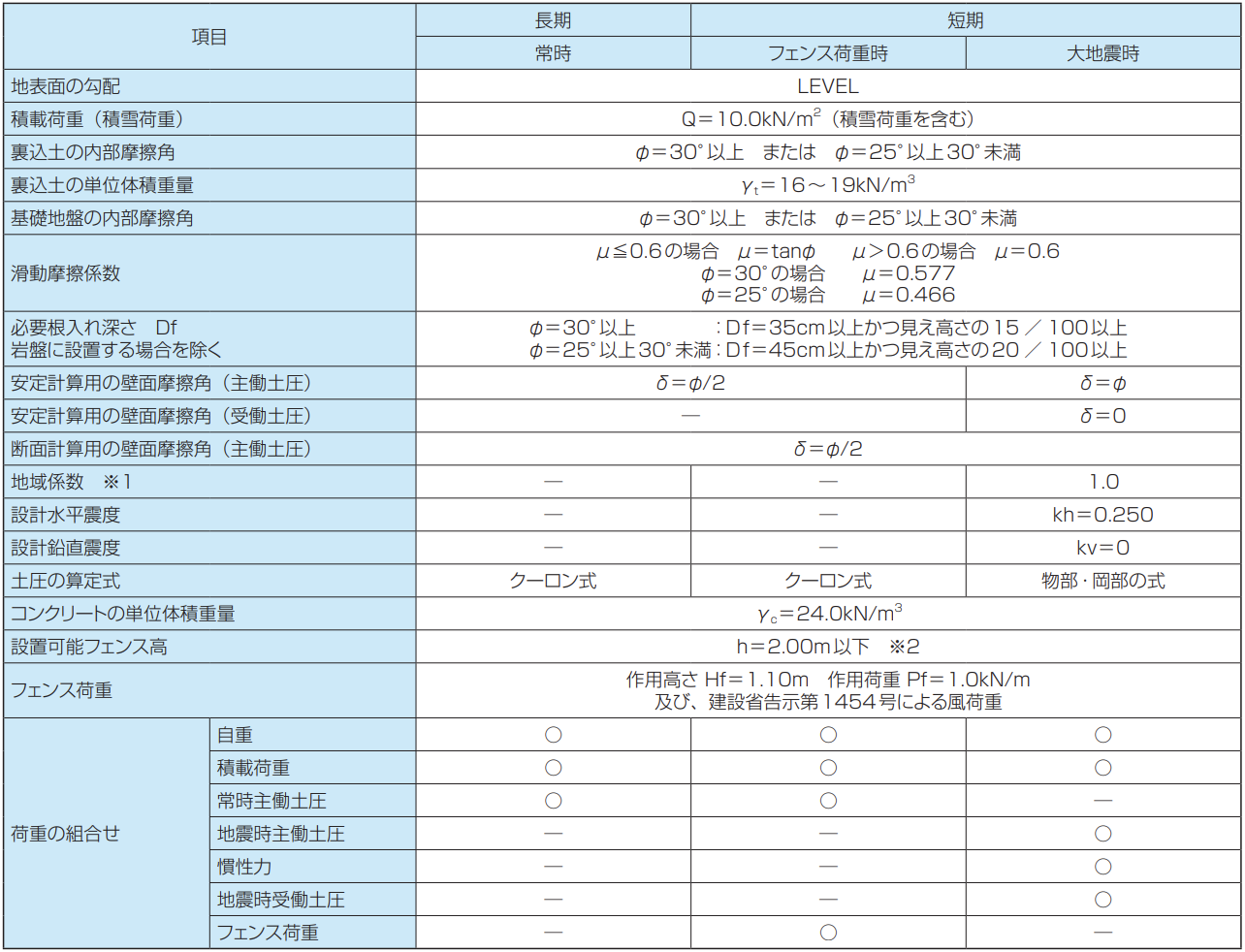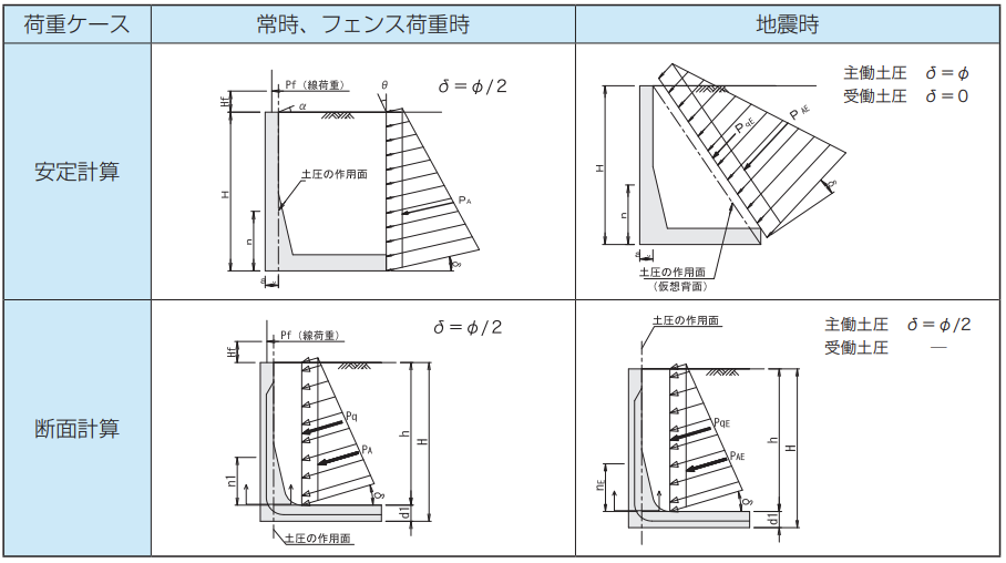 ●常時(長期) 〔主働土圧:Coulomb(クーロン)土圧式〕