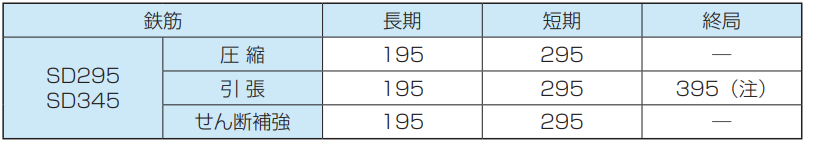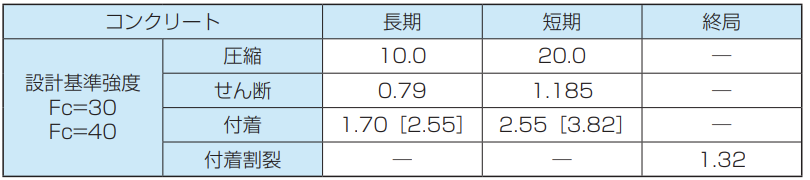 ※付着欄の[ ]外は上端筋、[ ]内はその他の鉄筋を示す