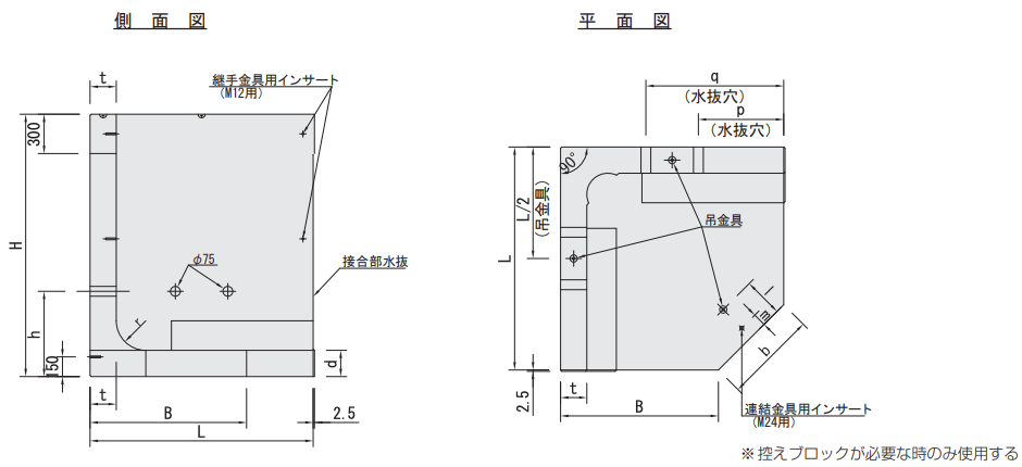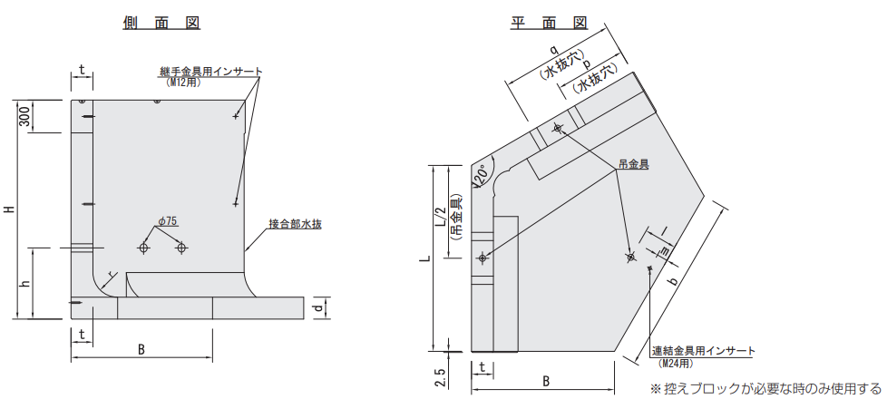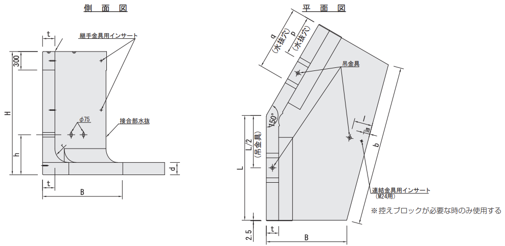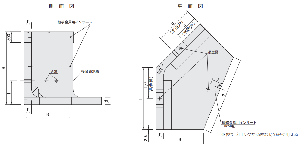 ● 控えブロック形状図