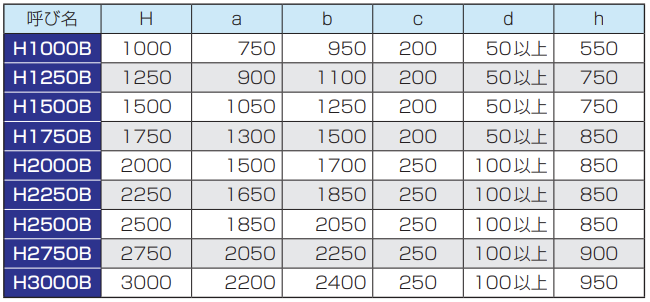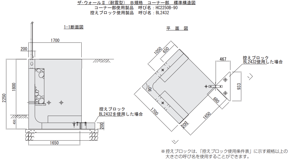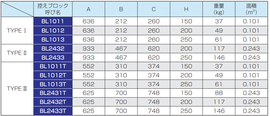 ※1 控えブロックは、必要な面積以上の呼び名を使用しますので、上表の呼び名と異なる場合があります。