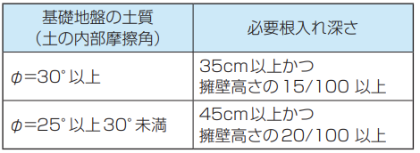 ・宅地造成及び特定盛土等規制法施行令より、擁壁を岩盤に接着して設置する場合を除き、次の通りとしてください。