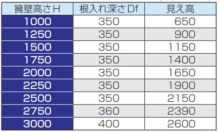 ※2 規格外の高さを使用する場合は、直近上位の規格の擁壁高を準用できます。
