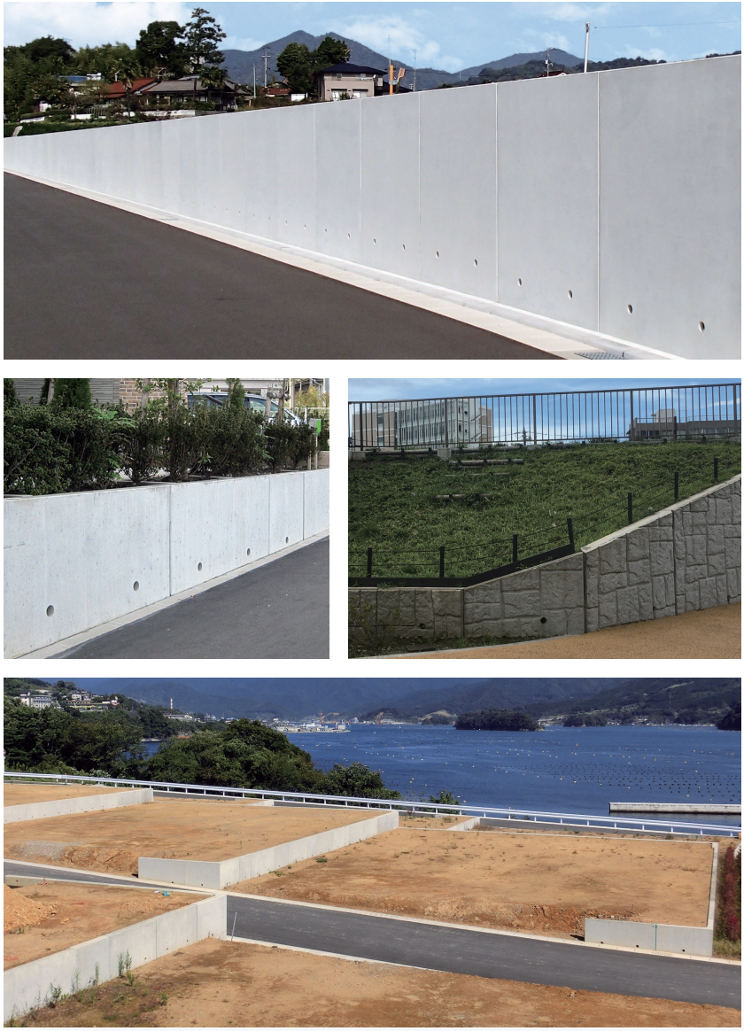 ・埋戻し土は、各層毎に均一に所定の密度となるように締め固めし、機械の走行または偏心荷重により、擁壁が損傷を受けないように注意してください。また、雨水、地表面水の排水には十分配慮し、埋戻土の沈下を見込んだ余盛以上の土羽を設けないでください。