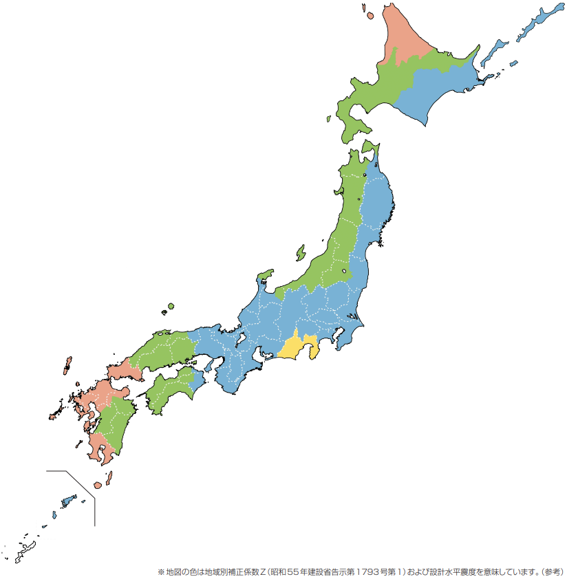 ※静岡県の地震地域別補正係数は、建設省告示では1.0ですが、静岡県建築構造設計指針による静岡県地震地域係数によって1.2と定められています。