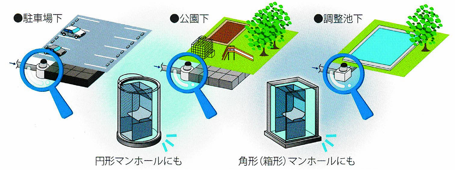 ● 雨水用貯留浸透施設への一般ゴミや土砂、枯葉等の流入防止(性能維持)
